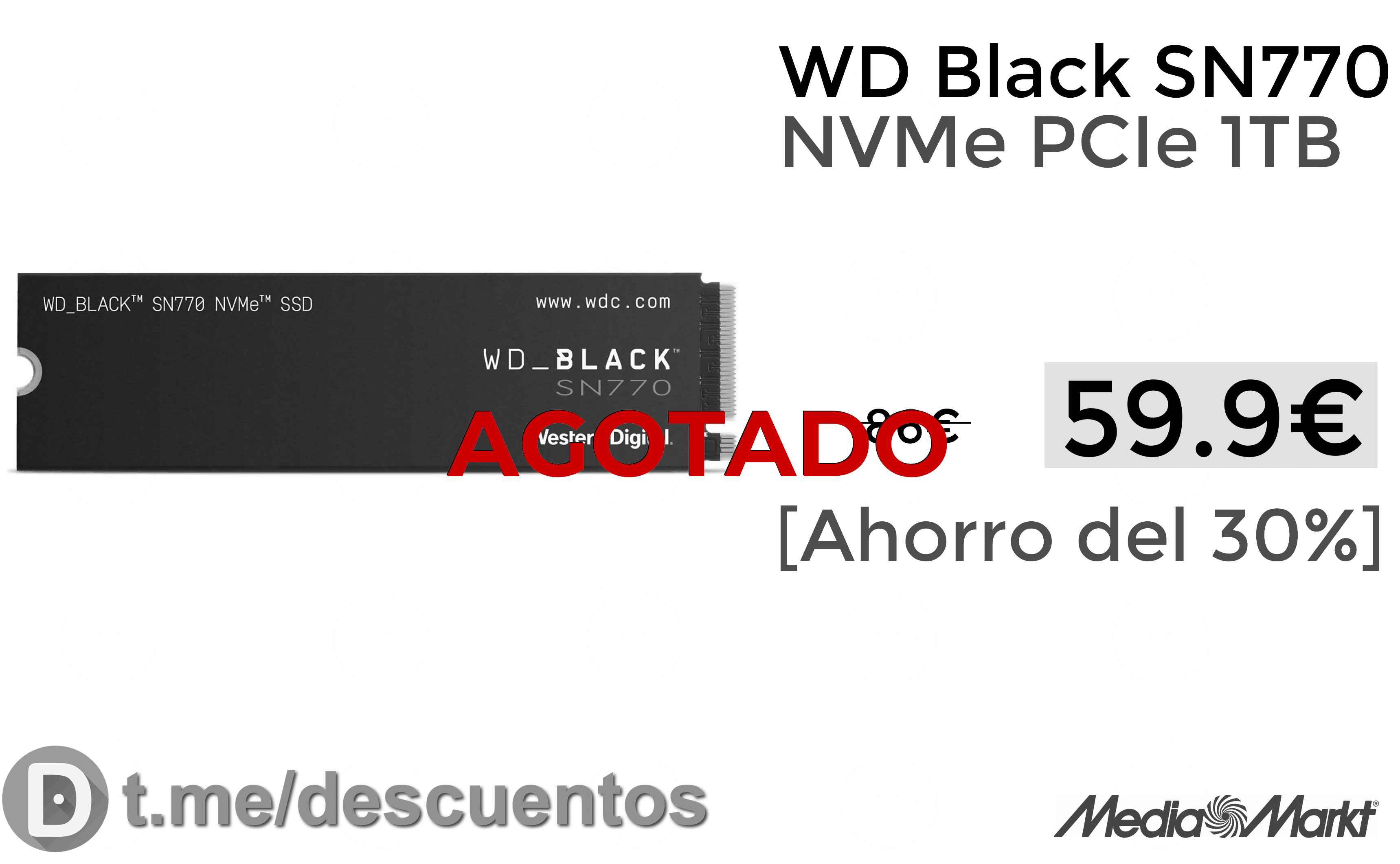 🔹WD Black SN770 NVMe PCIe 1TB solo 59.9€❗️⚡️ (PVP: +86€)