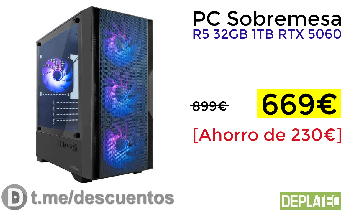 🔹PC Sobremesa R5 32GB 1TB RTX 5060 solo 669€❗️⚡️ (PVP: +899€)