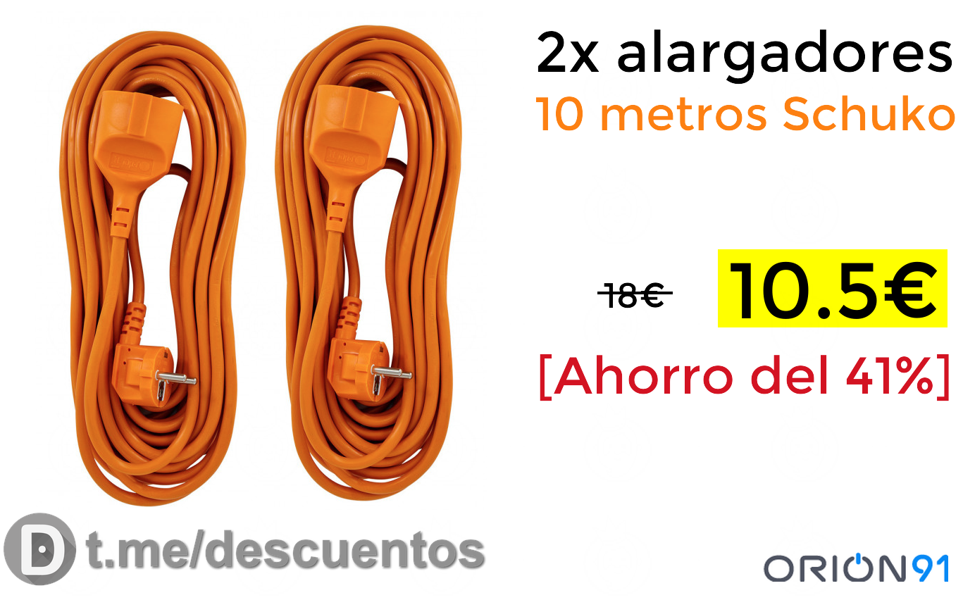 🔹2x alargadores 10 metros Schuko solo 10.5€❗️⚡️ (PVP: +18€)