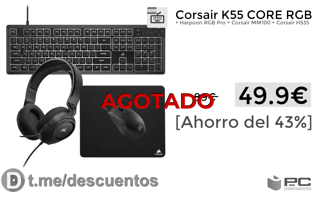 🔹Corsair K55 CORE RGB + Harpoon RGB Pro + Corsair MM100 + Corsair HS35 solo 49.9€❗️⚡️ (PVP: +89€)