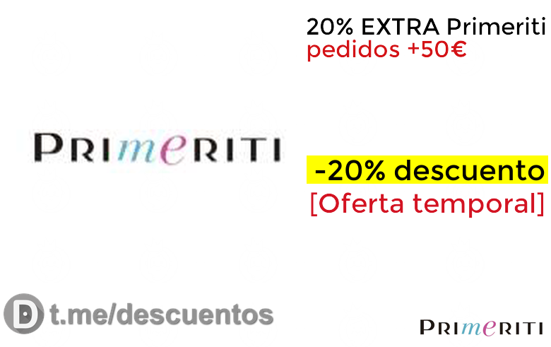 ✨Durante el día de hoy, Primeriti nos ofrece un descuento adicional del 20% en una selección de artículos ya rebajados, siempre y cuando nuestro pedido sea igual o superior a 50€. Hay una gran variedad de campañas activas en grandes marcas.
