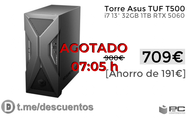 🔹Torre Asus TUF T500 i7 13ª 32GB 1TB RTX 5060 solo 709€❗️⚡️ (PVP: +900€)