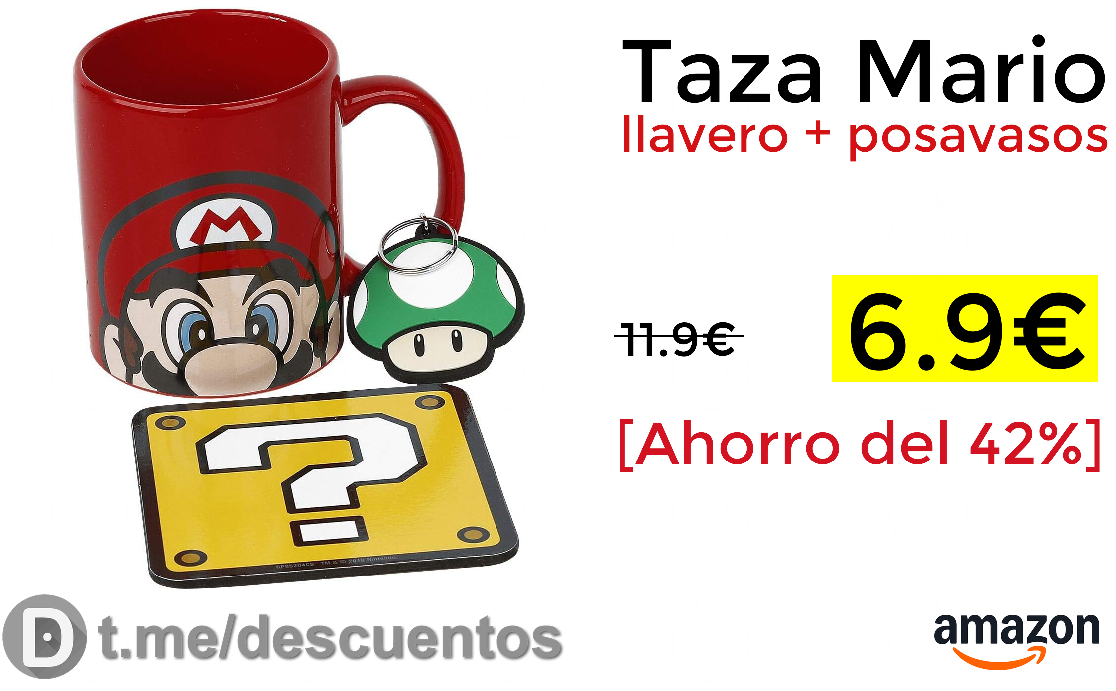 🔹Taza Mario llavero + posavasos solo 6.9€❗️⚡️ (PVP: +11.9€)