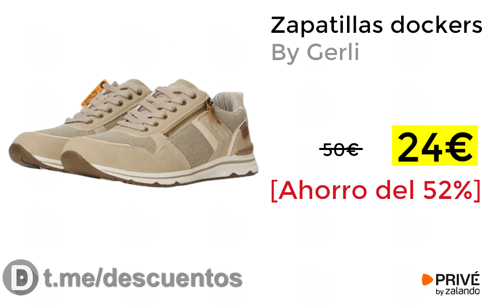 ✨Preciazo desde Privé para estas zapatillas para hombre Dockers by Gerli, unas zapatillas casuales en color beige de corte bajo con punta redondeada y suela plana, en material textil y acabados en cuero. Suela ligera para mayor comodidad, y disponible en tallas de la 40 a la 45