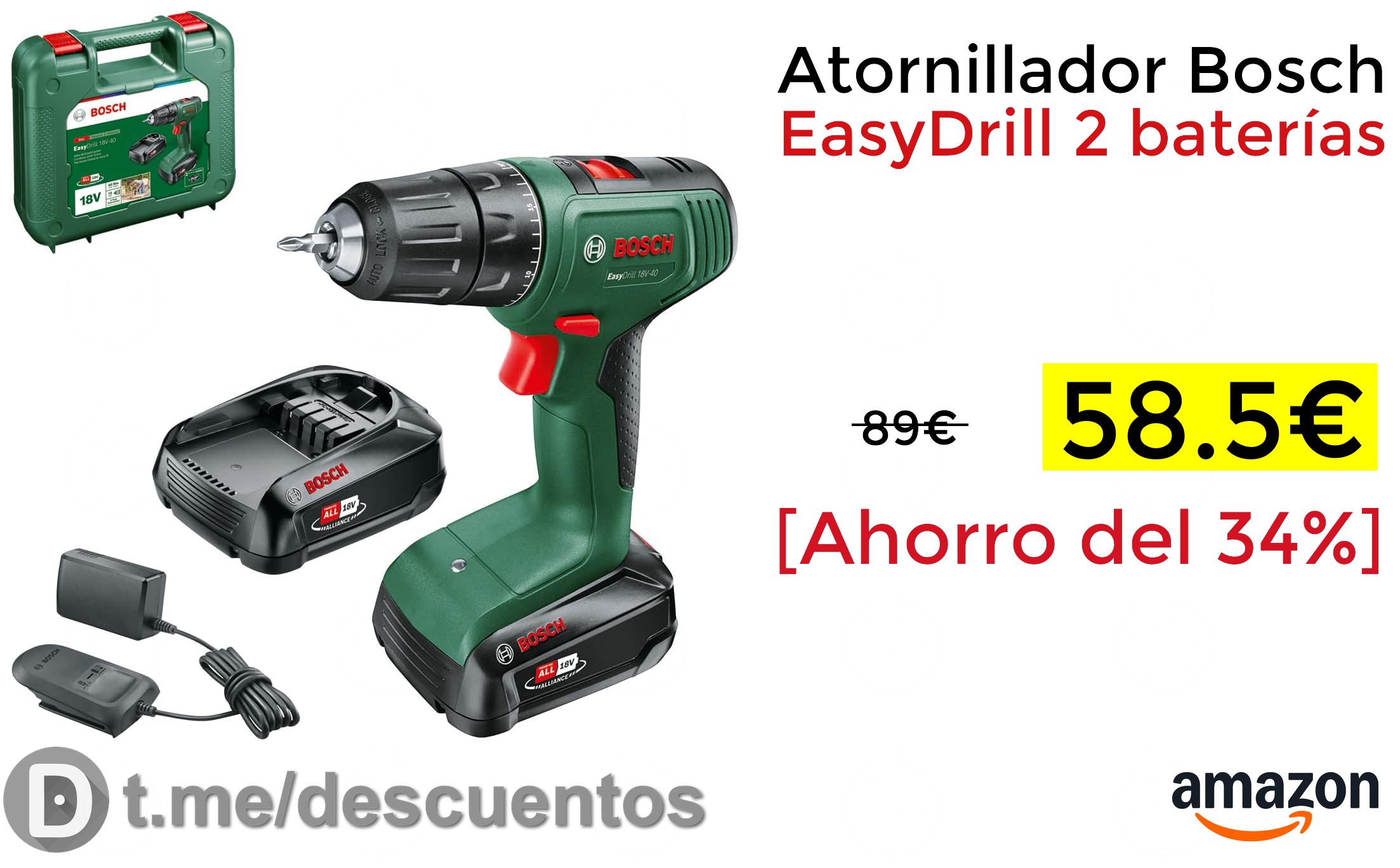 🔹Atornillador Bosch EasyDrill 2 baterías solo 58.5€❗️⚡️ (PVP: +89€)