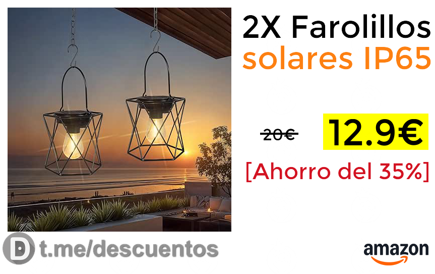✨Buen precio para este pack de 2 farolillos ideales para poner en la terraza o el patio. Son solares e impermeables IP65. Pueden ponerse colgados o sobre una mesa.