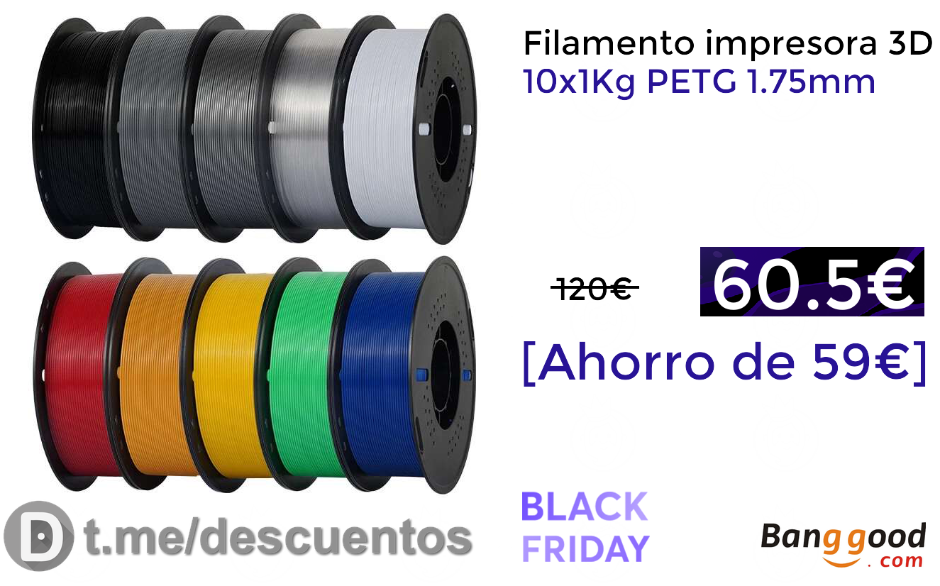 🔹Filamento impresora 3D 10x1Kg PETG 1.75mm solo 60.5€❗️✔️ (PVP: +120€)