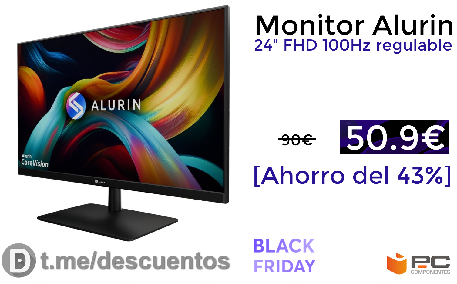 🔹Monitor Alurin 24" FHD 100Hz regulable solo 50.9€❗️✔️ (PVP: +90€)