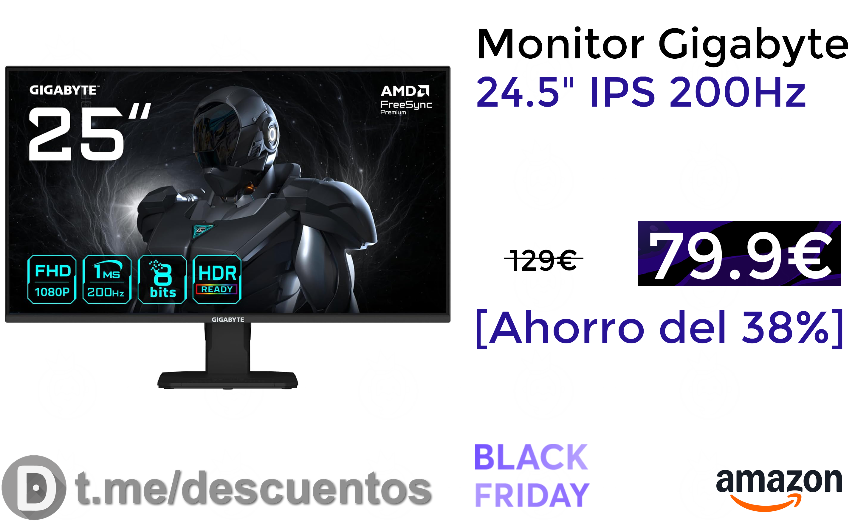 🔹Monitor Gigabyte 24.5" IPS 200Hz solo 79.9€❗️✔️ (PVP: +129€)