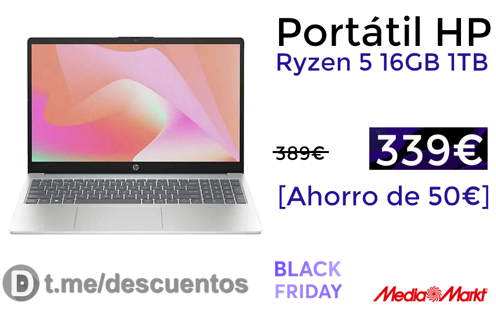🔹Portátil HP Ryzen 5 16GB 1TB solo 339€❗️✔️ (PVP: +389€)