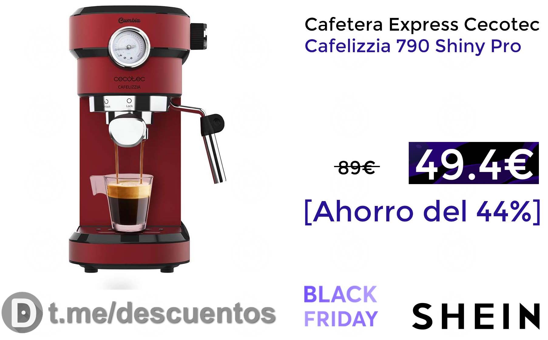 ✨Preciazo desde la tienda oficial de Cecotec en Shein para esta cafetera express Cafelizzia 790 Shiny Pro con diseño elegante y compacto para los amantes del buen café. Dispone de manómetro de control para comprobar la presión a tiempo real. Envío gratis.