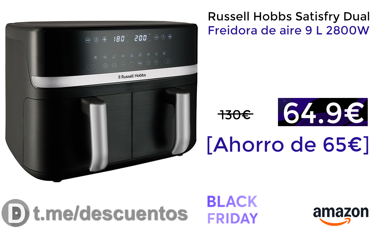 🔹Russell Hobbs Satisfry Dual Freidora de aire 9 L 2800W solo 64.9€❗️✔️ (PVP: +130€)