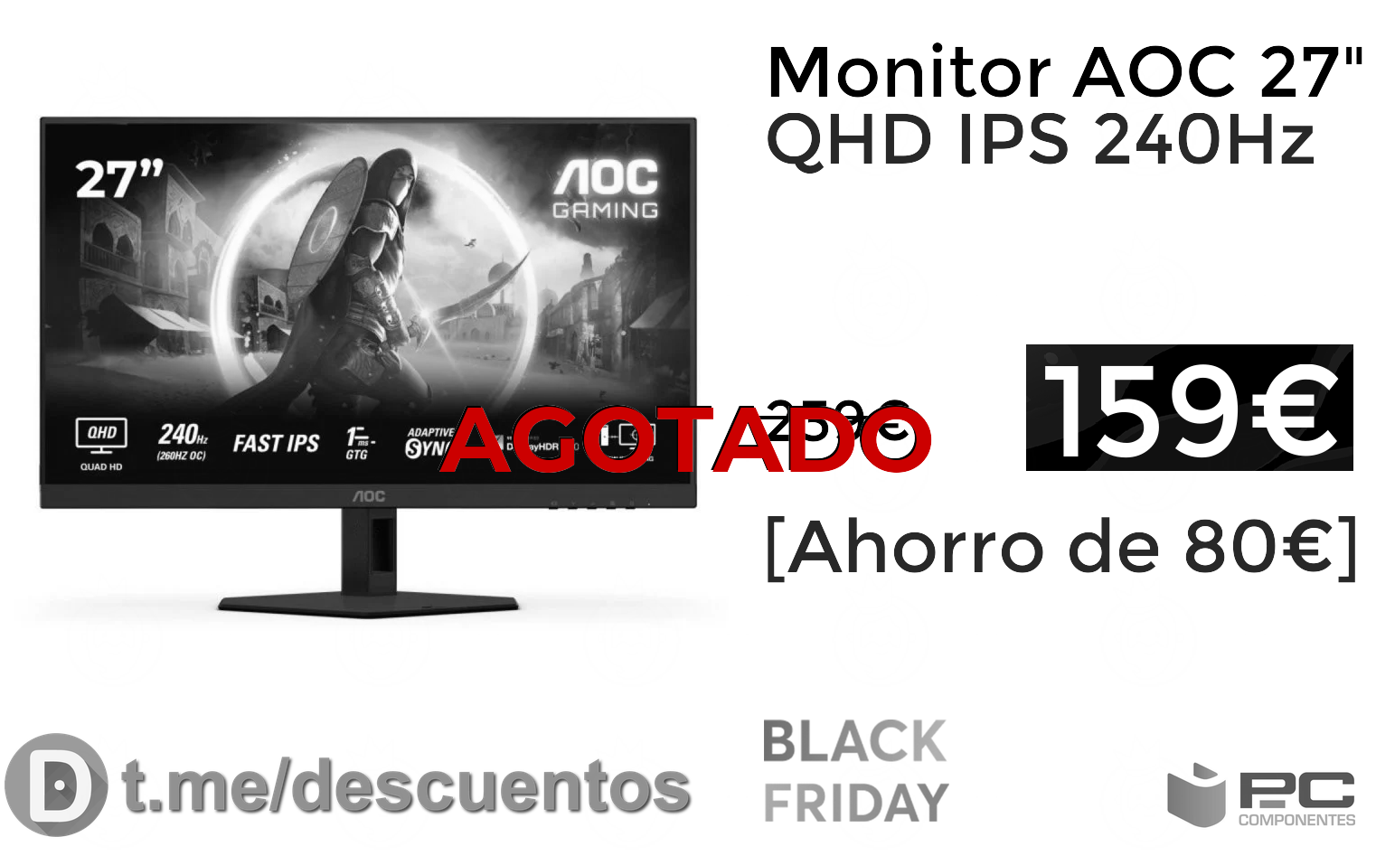 🔹Monitor AOC 27" QHD IPS 240Hz solo 159€❗️✔️ (PVP: +239€)