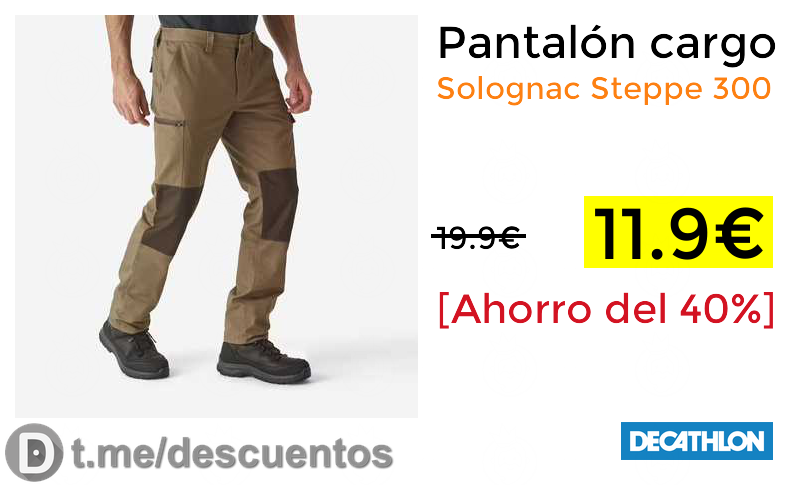 🔹Pantalón cargo Solognac Steppe 300 solo 11.9€❗️⚡️ (PVP: +19.9€)