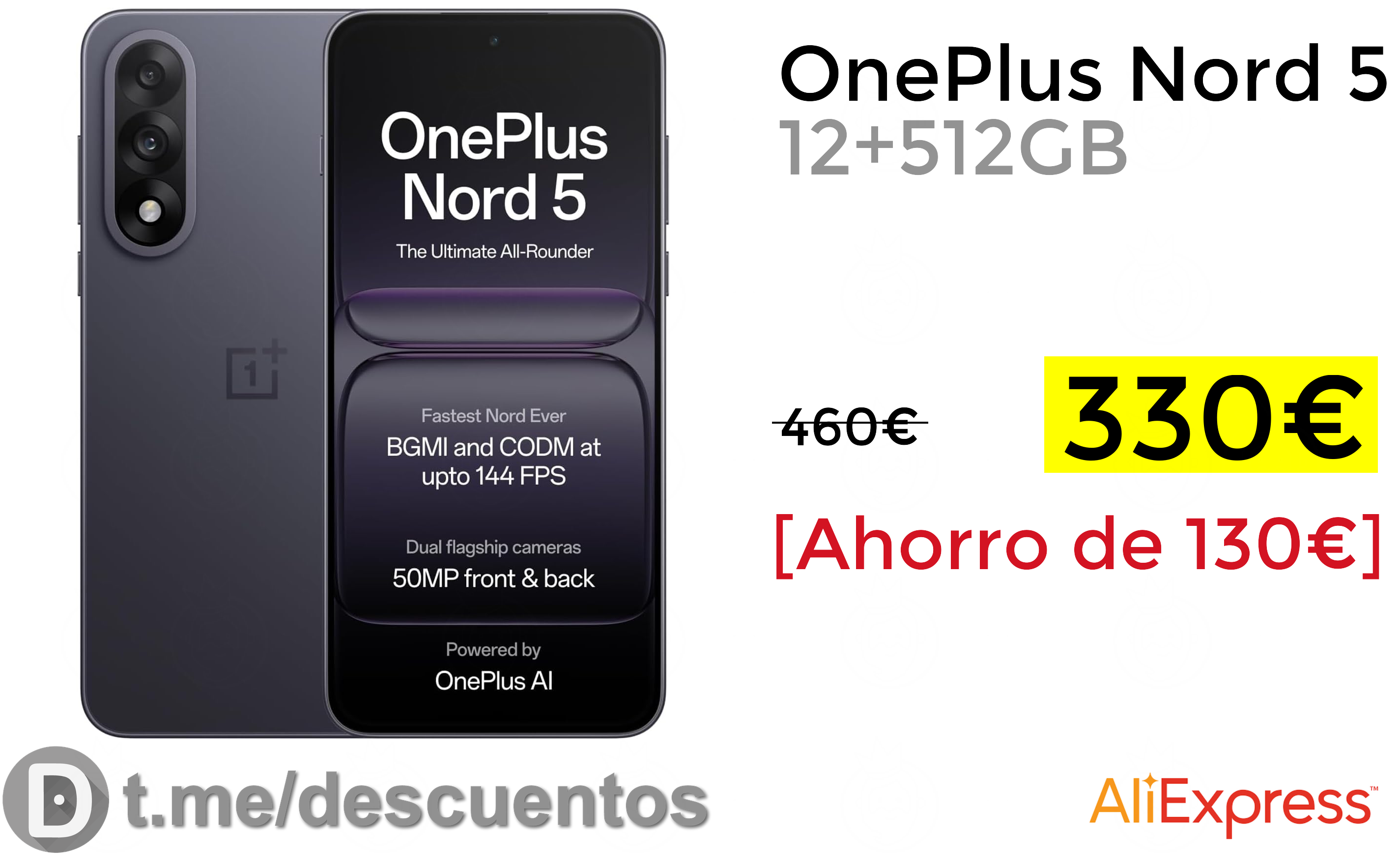 🔹OnePlus Nord 5 12+512GB solo 330€❗️⚡️ (PVP: +460€)