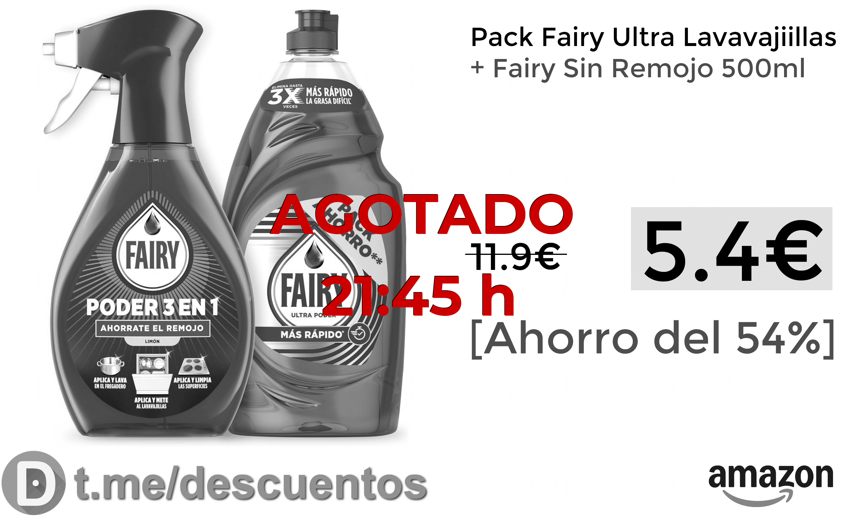 🔹Pack Fairy Ultra Lavavajiillas + Fairy Sin Remojo 500ml solo 5.4€❗️⚡️ (PVP: +11.9€)