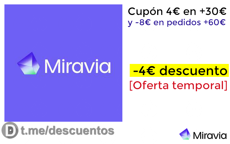 ✨Nuevos cupones disponibles para que hagas esa compra que tenias en mente, dos cupones exclusivos para la web de Miravia, encuentra todo tipo de artículos, desde electrónica, prendas, zapatos, decoración, accesorios y mucho más. Solo agrega el o los artículos que quieres en tu carrito y, según el importe, aplica el cupón de descuento que corresponde.