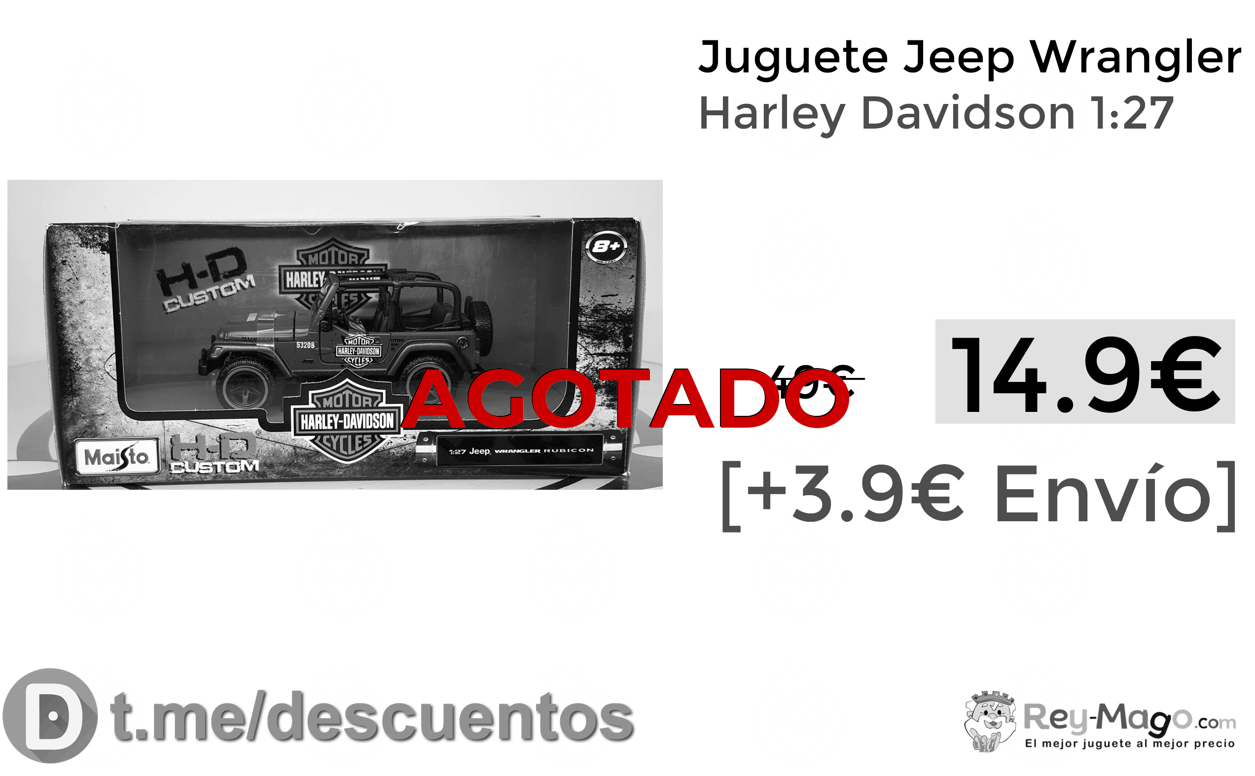 🔹Juguete Jeep Wrangler Harley Davidson 1:27 solo 14.9€❗️⚡️ (PVP: +49€)