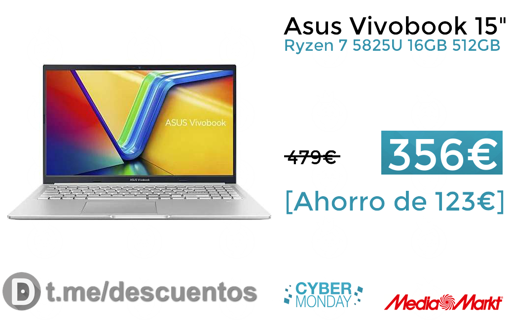 🔹Asus Vivobook 15" Ryzen 7 5825U 16GB 512GB solo 356€❗️💠 (PVP: +479€)