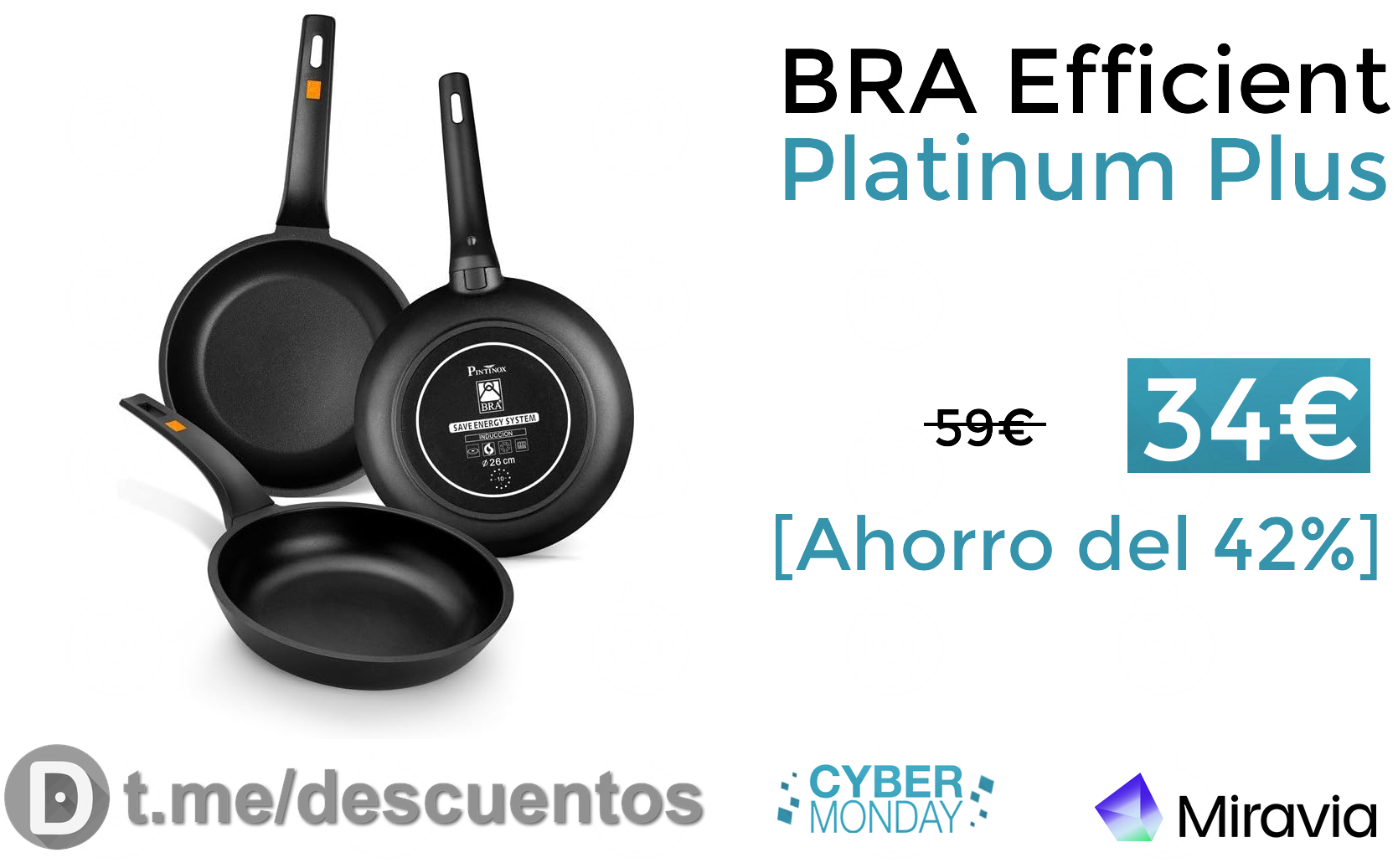 ✨Buena oferta para este juego de 3 sartenes de la conocida marca BRA, las Efficient son aptas para todo tipo de fuegos y están fabricadas con aluminio fundido de alta calidad, recubrimiento tricapa Platinum Plus sin PFOA, el set esta compuesto por 3 sartenes de 18, 22 y 26 centímetros. Envío gratis.