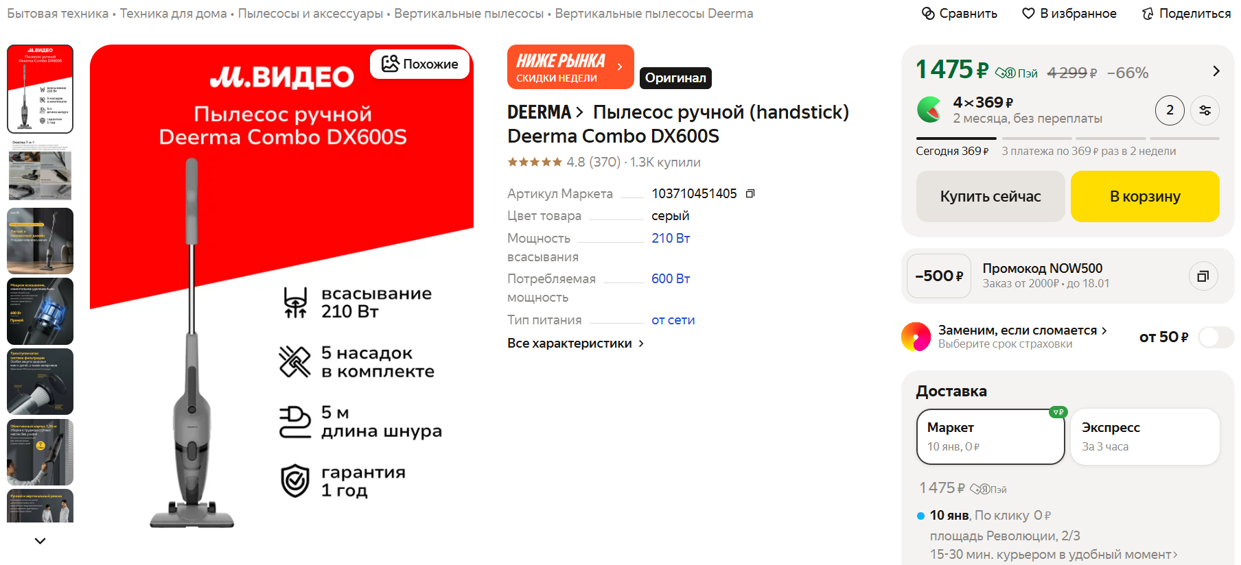 🧹Deerma Combo DX600S за 1 475 рублей при оплате картой «Пэй» на Маркете