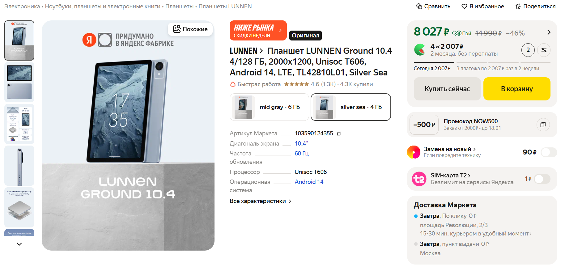 Ультрабюджетный планшет от суббренда Яндекса с металлическим корпусом, 10,4-дюймовым IPS-экраном, 4/128 Гбайт памяти, 3,5-мм разъемом для наушников и аккумулятором на 7000 mAh. В общем, это простенькое устройство для потребления медиаконтента.