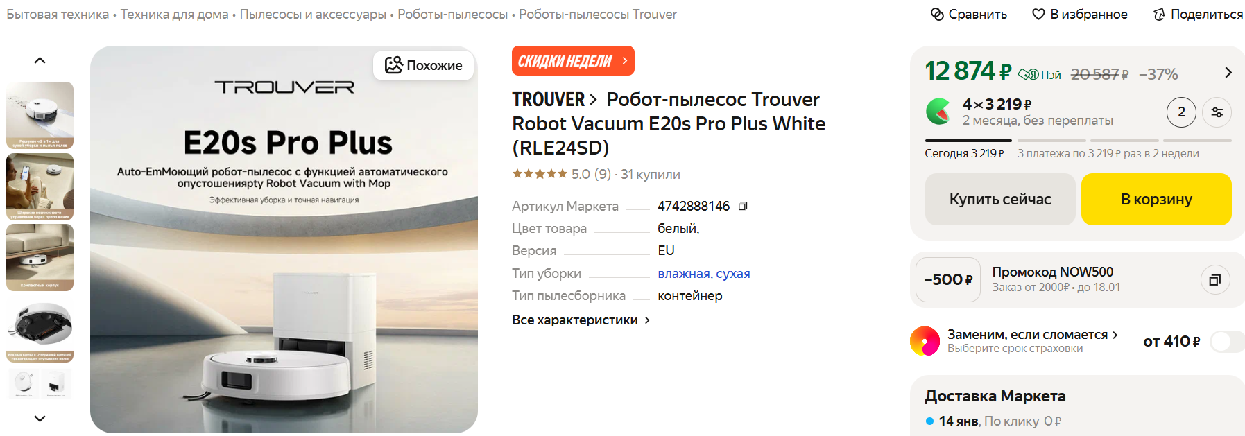 🧹Trouver E20s Pro Plus за 12 874 рубля при оплате картой «Пэй» на Маркете
