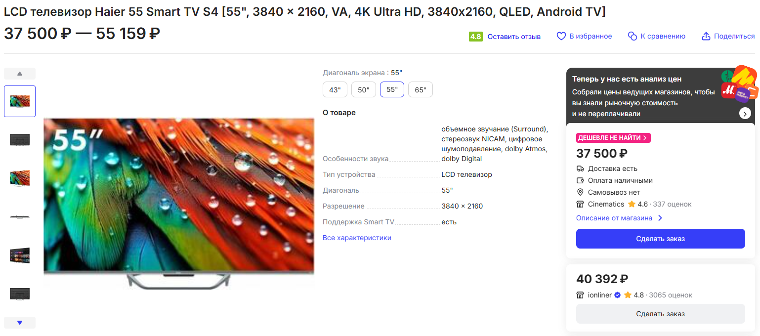📺Haier TV S4 55" за 37 500 рублей на price.ru