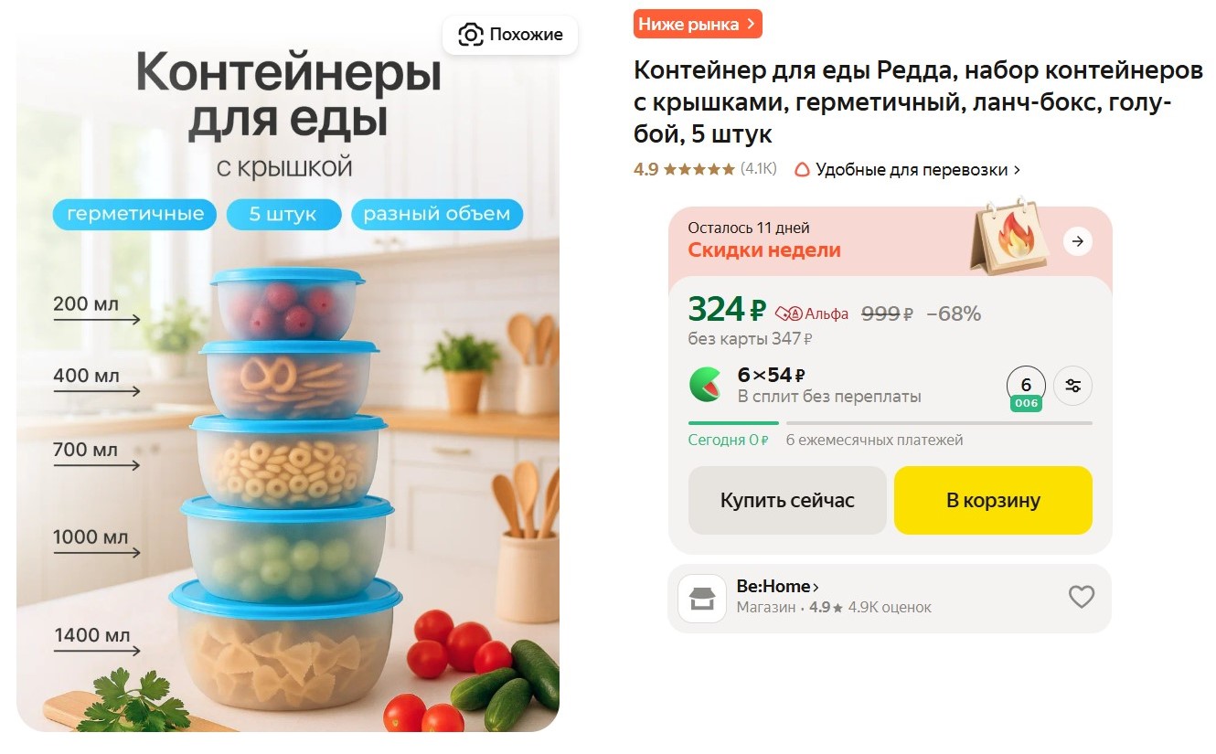 • Контейнеры для еды Редда за 324₽. Или в Москве за 215₽ у продавца OBI. В наборе 5 контейнеров из пищевого пластика объёмом 0.2, 0.4, 0.7, 1 и 1.4 л, а также крышки к ним. Можно мыть в ПММ и использовать в СВЧ.