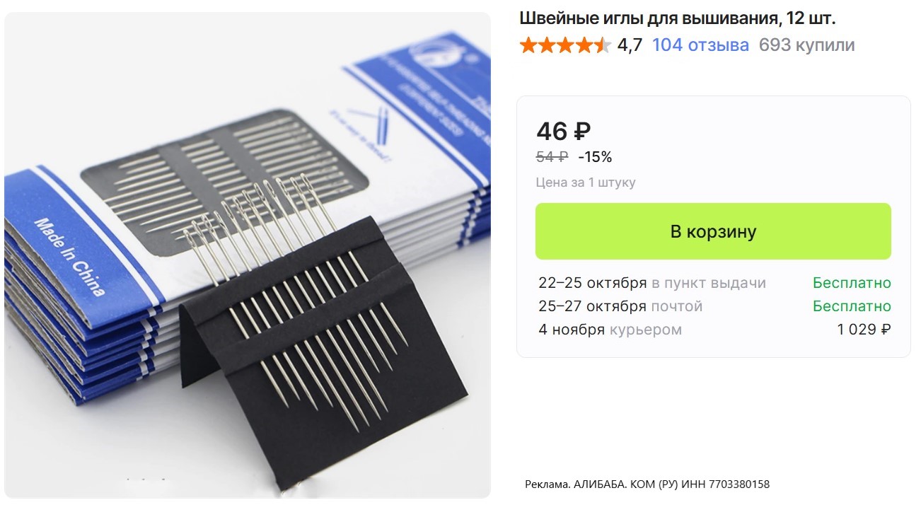 • Швейные иглы с боковым ушком, 12 шт. за 46₽. Простота установки нити сэкономит ваше время, справится даже ребенок! Подходят для вышивки и декоративных работ. Или бери набор из 10 инструментов для продевания нити MIHJUSFDH за 59₽.