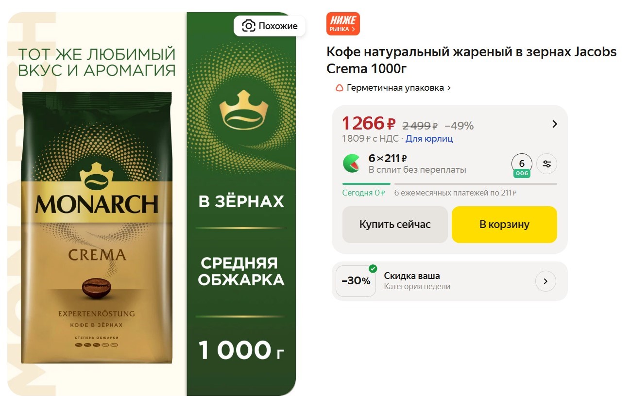 Такие цены с любимой категорией месяца и при оплате Яндекс Пэй или Альфа-Картой, но могут отличаться, проверяй у себя.