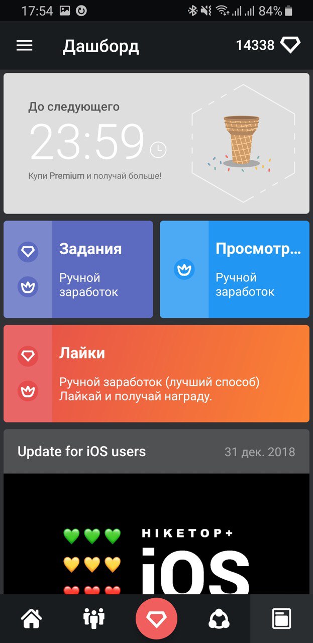 Заказы на лайки вскоре начнут выполнятся как и раньше, а возможно даже лучше. Для этого мы добавили новый способ заработка кристаллов, в виде ручных заданий на лайки, по аналогии с заданиями на просмотры! Теперь вы можете заработать 300 кристаллов всего за пару минут, лайкая посты других пользователей. Найти это можно в Дашборде (там где и дневной бонус) или на экране заработка справа.