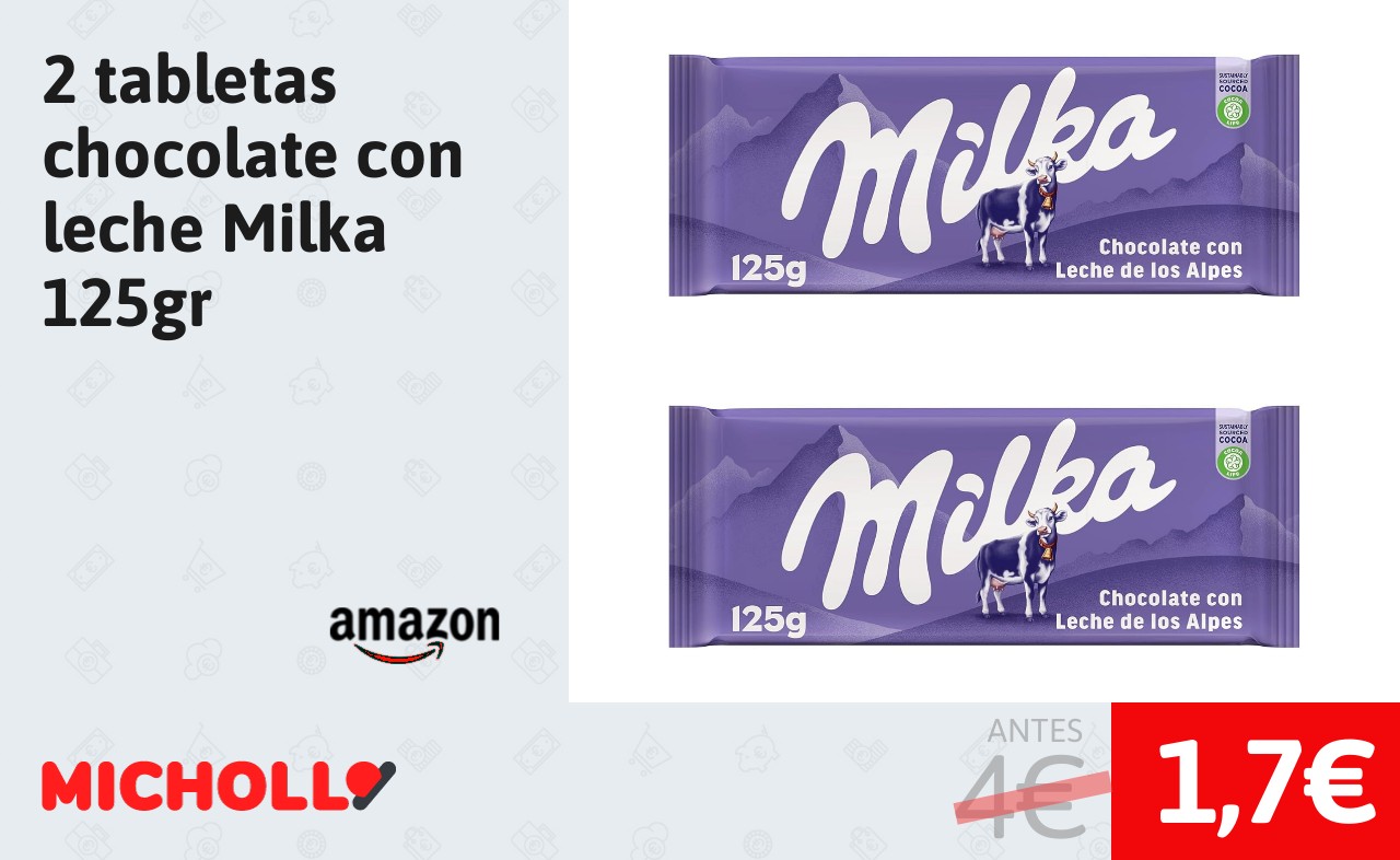 🔹 2 tabletas chocolate con leche Milka 125gr solo 1,7€❗️❤️ (PVP: 4€)