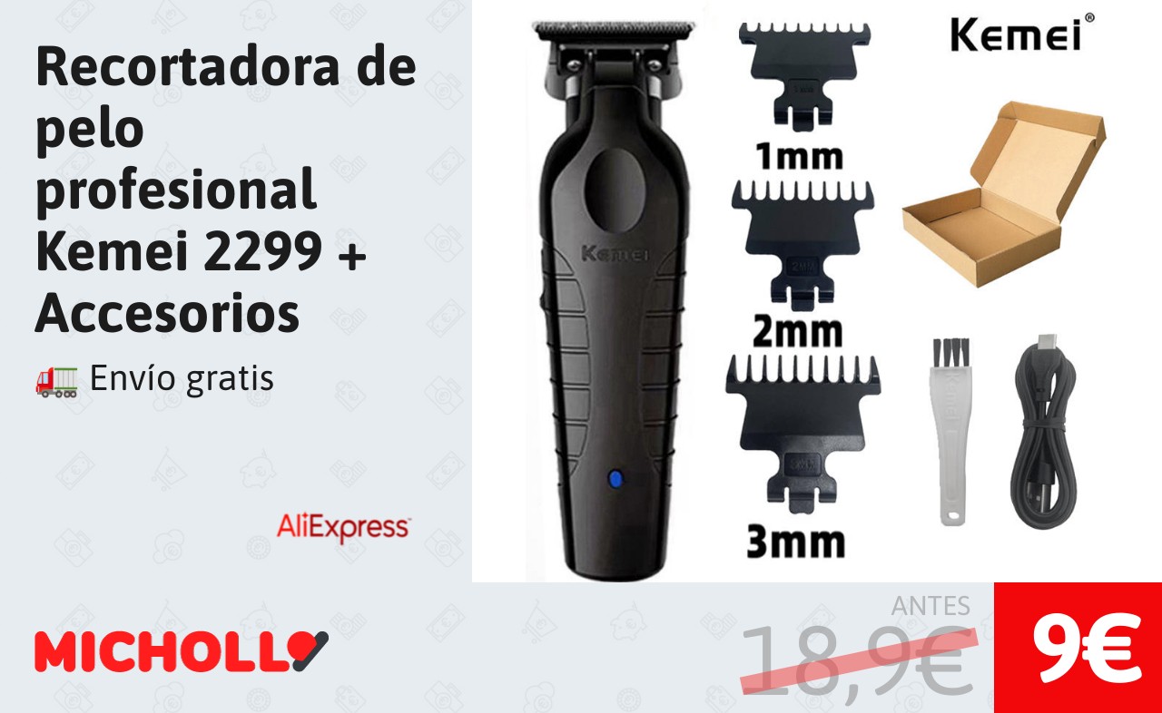 🔹 Recortadora de pelo profesional Kemei 2299 + Accesorios solo 9€❗️❤️ (PVP: 18,9€)