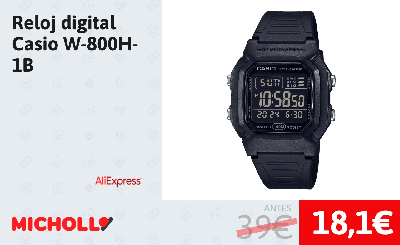🔹 Reloj digital Casio W-800H-1B solo 18,1€❗️❤️ (PVP: 39€)