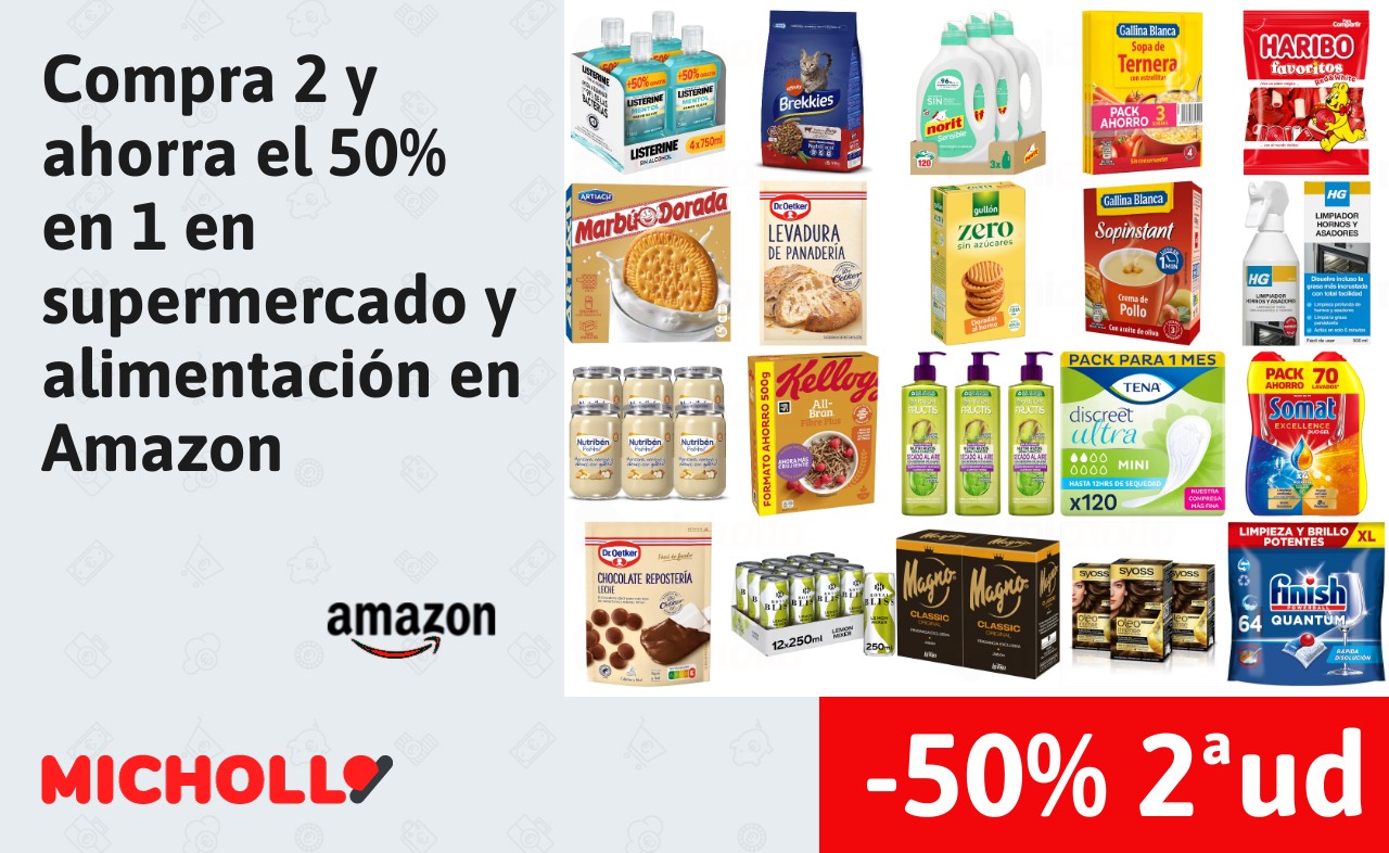 4. Compra 2 y ahorra el 50% en 1 en supermercado y alimentación en Amazon