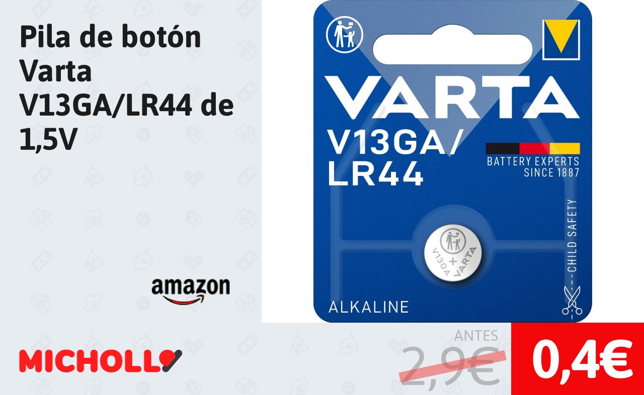 🔹 Pila de botón Varta V13GA/LR44 de 1,5V solo 0,4€❗️❤️ (PVP: 2,9€)