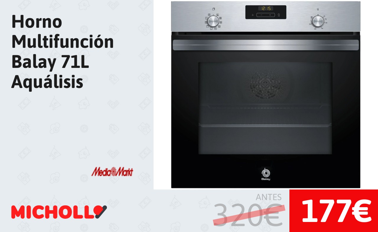🔹 Horno Multifunción Balay 71L Aquálisis solo 177€❗️❤️ (PVP: 320€)