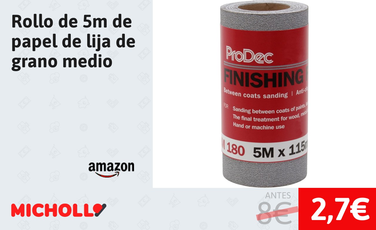 🔹 Rollo de 5m de papel de lija de grano medio solo 2,7€❗️❤️ (PVP: 8€)