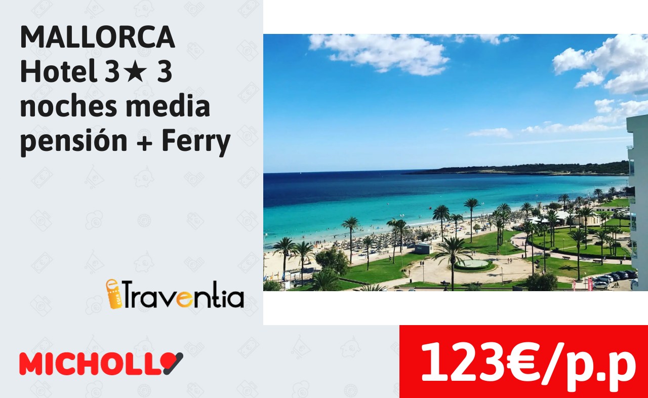 🔹 MALLORCA Hotel 3★ 3 noches media pensión + Ferry solo 123€❗️❤️