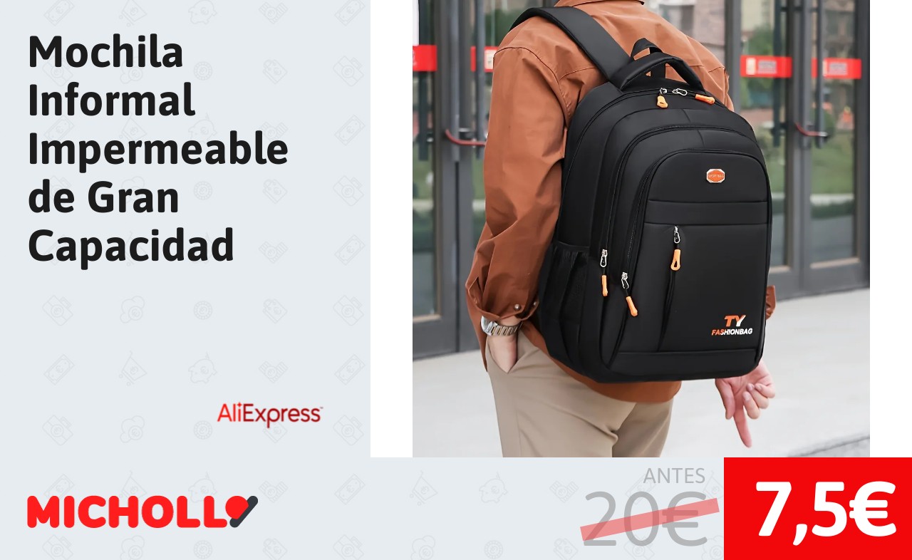 🔹 Mochila Informal Impermeable de Gran Capacidad solo 7,5€❗️❤️ (PVP: 20€)
