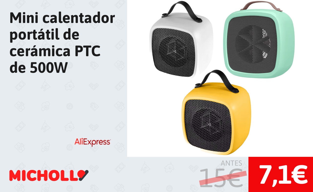 🔹 Mini calentador portátil de cerámica PTC de 500W solo 7,1€❗️❤️ (PVP: 15€)