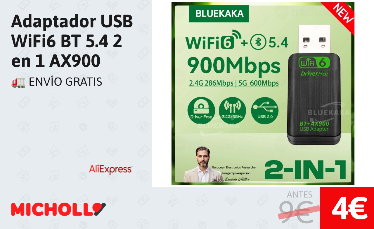 🔹 Adaptador USB WiFi6 BT 5.4 2 en 1 AX900 solo 4€❗️❤️ (PVP: 9€)
