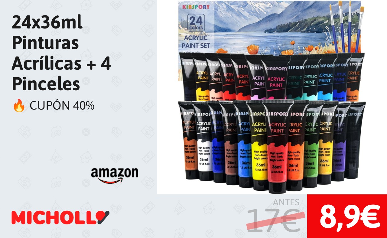 🔹 24x36ml Pinturas Acrílicas + 4 Pinceles solo 8,9€❗️❤️ (PVP: 17€)