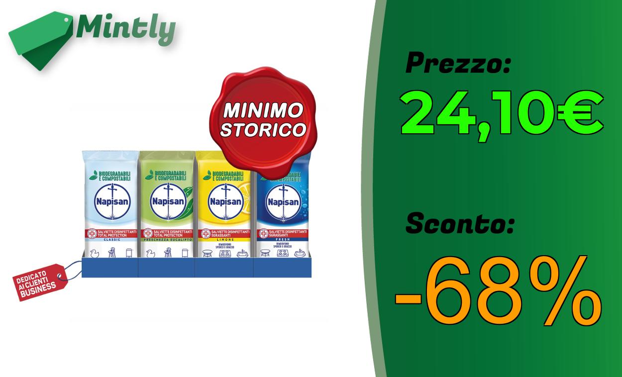 ❌ Napisan Cassa Mista Salviette Disinfettanti Multisuperfici Biodegradabili x40, 32pz, Total Protection