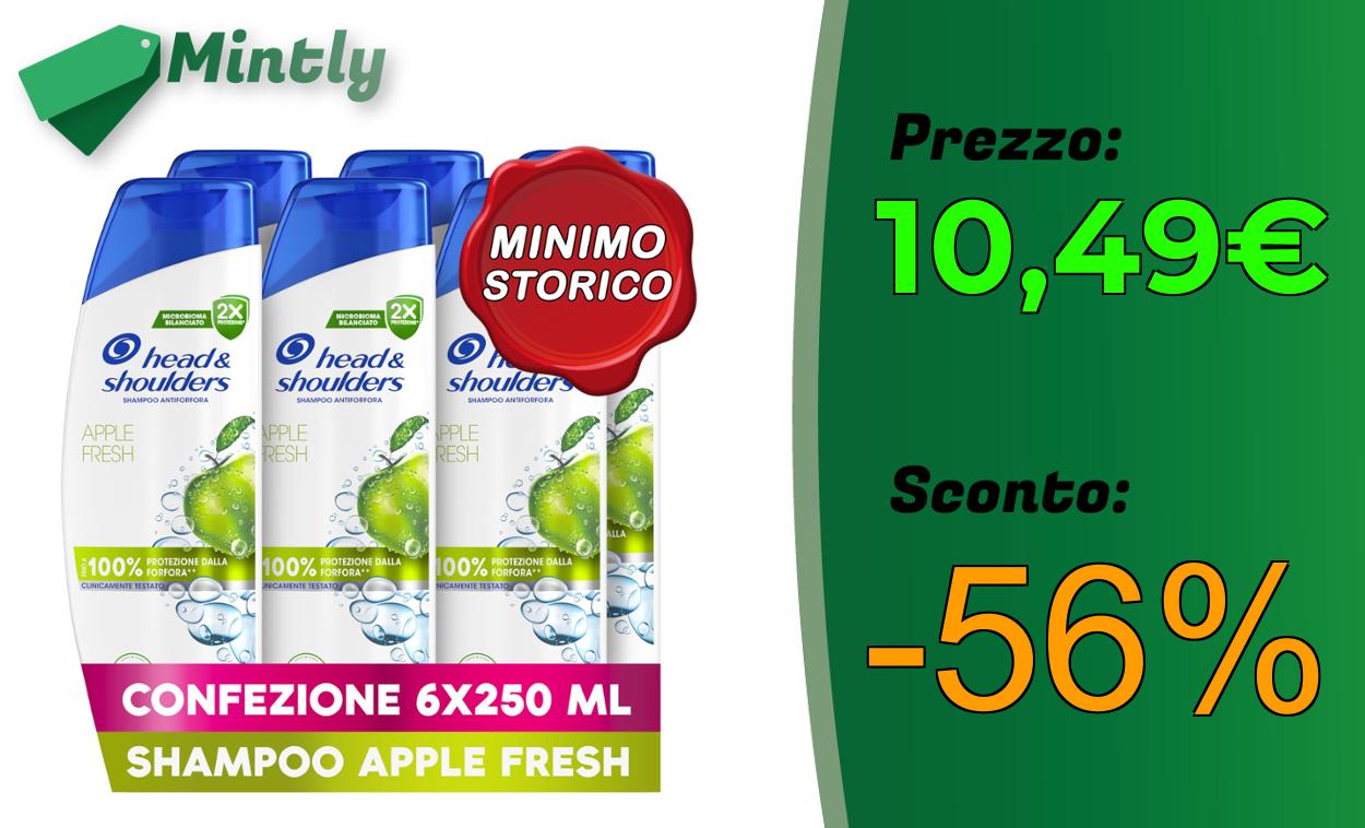 💣 Head & Shoulders Apple Fresh Shampoo Antiforfora 250ml Formato Convenienza X6. Uso Quotidiano. Fino al 100% Protezione dalla Forfora, Clinicamente Testato. Per Tutti i Tipi di Cute e Capelli