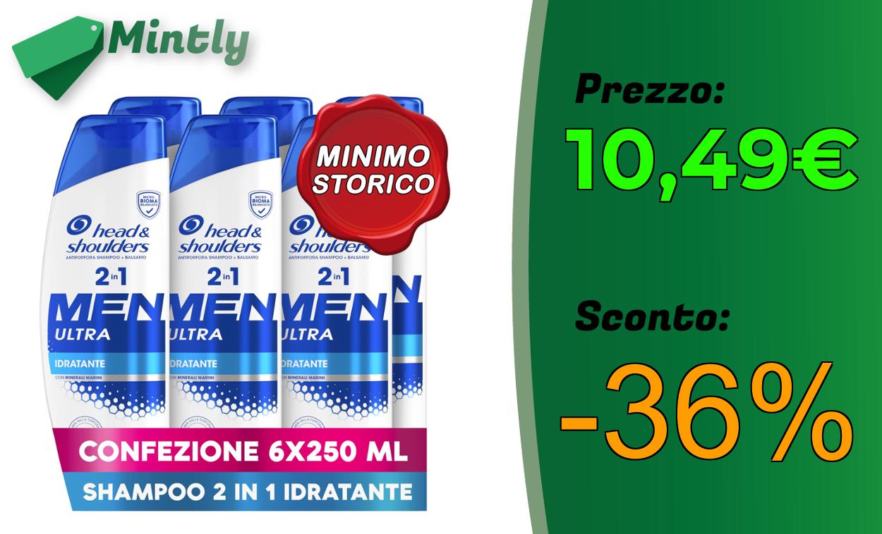 💣Head & Shoulders Men Ultra Idratante 2 in 1 Shampoo e Balsamo Antiforfora 6x250ml per Uso Quotidiano. Combatte Forfora, Prurito, Secchezza e Capelli Grassi. Con Minerali Marini. Sensazione Di Pulizia