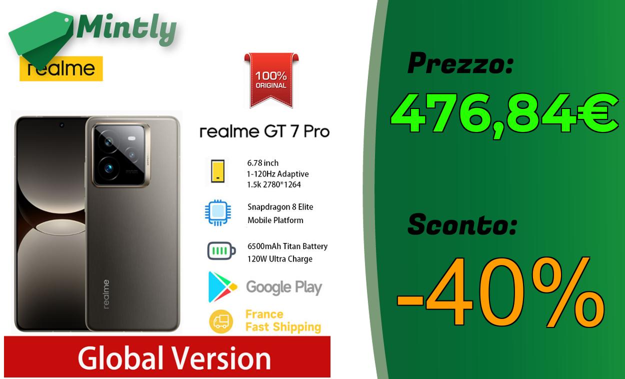 💣 realme GT7 Pro 5G, 12 GB RAM + 256 GB ROM, Snapdragon 8 Elite, Display curvo a quattro lati da 120 Hz