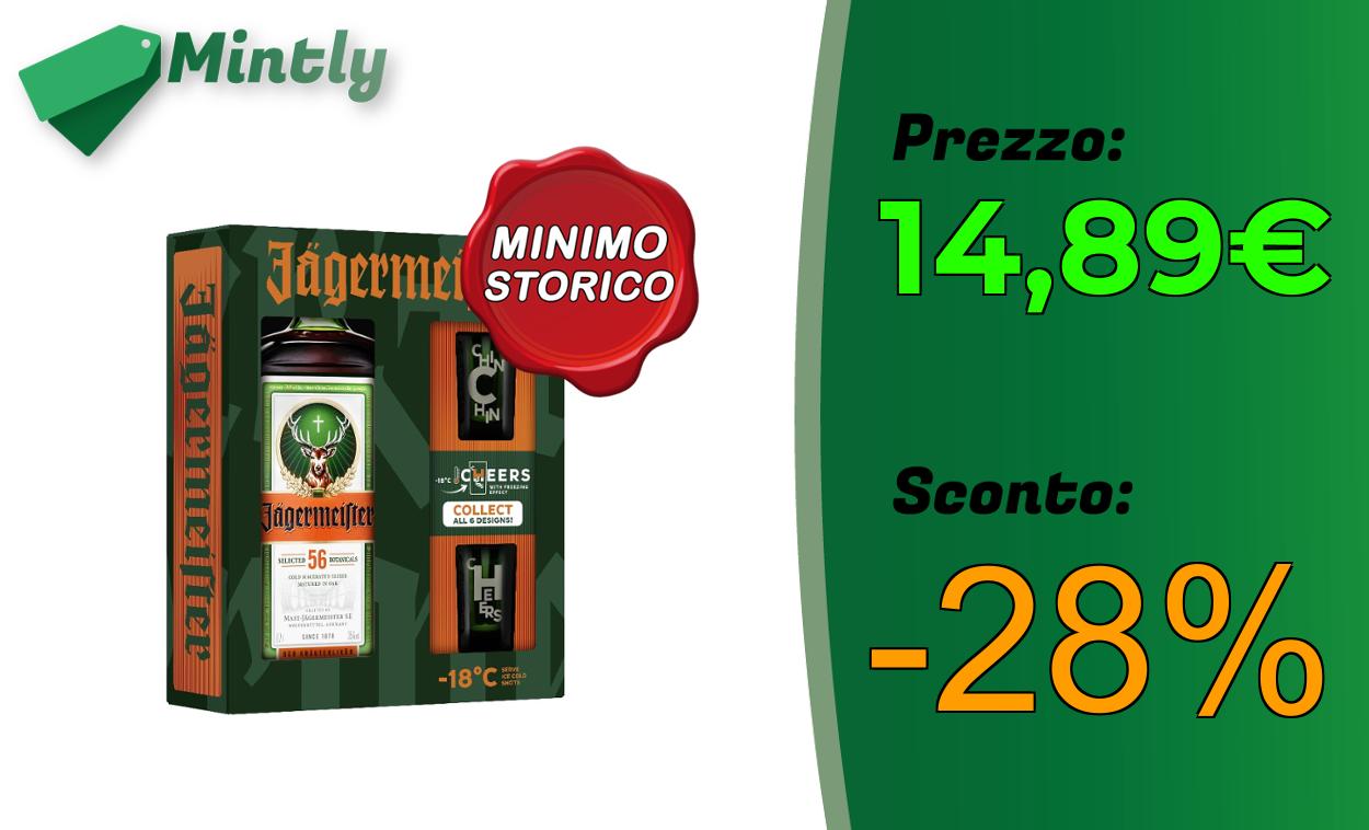 💣Jägermeister 70cl Special Pack Cheers - Con due bicchieri shot che cambiano al freddo. Liquore a base di 56 Botaniche con astuccio. Da servire ghiacciato. 35% Vol.