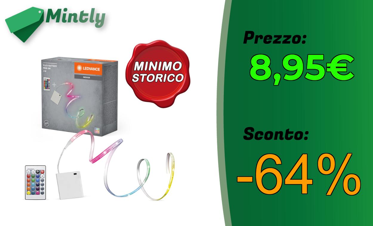 💣 LEDVANCE FLEX Striscia luminosa a LED con batteria, 5 W, controllo del colore RGB, lunghezza 5 m, dimmerabile, flessibile e pieghevole, adatta per applicazioni interne